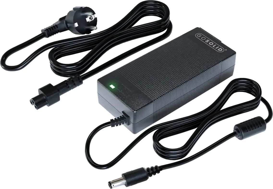 GO SOLID! Cargador 54.6V 2A para Duotts C29 bicicleta eléctrica. Diseño compacto y ligero con indicador LED. Proporciona carga estable con protección contra sobretensión, sobrecorriente y cortocircuito para cuidar la batería. Perfecto como cargador de repuesto o adicional, compatible con Duotts C29.