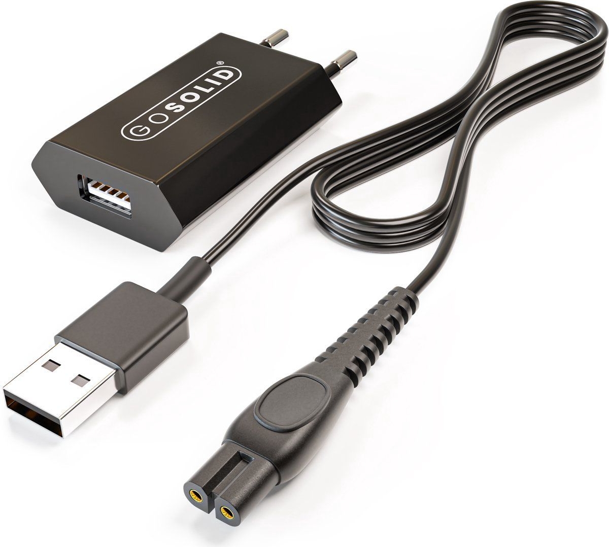 Cargador 5V compacto de GO SOLID! ideal como repuesto para tu cortapelos. Proporciona carga estable y segura con protección contra sobrecorriente y cortocircuitos. Diseño ligero y compacto, perfecto para viaje o uso diario. Compatible con Revahs ClipperTwo Pro.