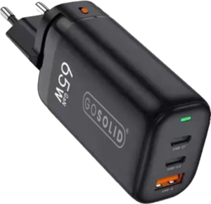 Este GO SOLID! cargador compatible con dispositivos USB-C universales está diseñado para un rendimiento óptimo y carga segura. Con 65W y tres puertos puedes cargar portátiles, tablets y smartphones de forma estable y eficiente.